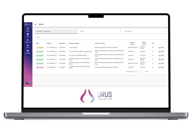 « C'est en fait mon expérience d'exportateur de fruits et légumes d'Almeria qui m'a poussé à créer une application pour accélérer la communication entre les entreprises de logistique et leurs clients, et pour permettre aux exportateurs de savoir plus facilement où se trouvent leurs marchandises à tout moment », explique Juanjo Barrionuevo. « C'est ainsi qu'est née la plateforme Orus Logistics, que nous lançons sur le marché depuis septembre 2024. »