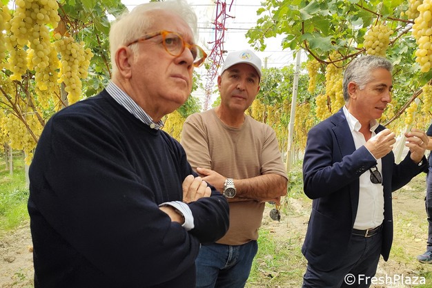 De gauche à droite : le président de l'Association sicilienne du raisin de table, l'agronome Vincenzo Di Piazza, Marsello Lo Sardo, président du consortium, et le vice-président Giovanni Giglia - Cliquez ici pour voir l'album photo de l'événement