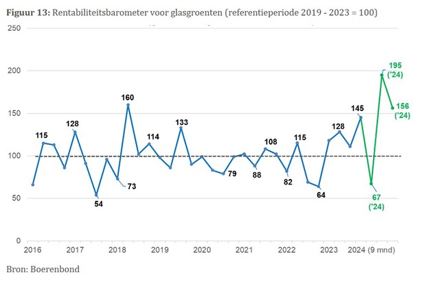 Les serristes ont réalisé une augmentation moyenne de leur chiffre d'affaires d'environ 6 % au cours des 8 premiers mois de 2024. Les hausses de prix des concombres et des tomates grappe, en particulier, y ont contribué. La production a été plus faible. D'une manière générale, l'organisation sectorielle Boerenbond a souligné que « les conditions météorologiques très difficiles ont principalement affecté les cultures de plein air. »