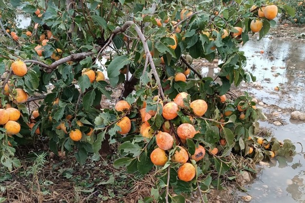 Le kaki est l'une des cultures les plus touchées et l'on craint, si les précipitations se poursuivent au cours des prochains jours, des problèmes pour les variétés précoces d'agrumes, des problèmes plus graves pour le kaki et des dommages pour les légumes en attente de récolte en raison de l'excès d'humidité.