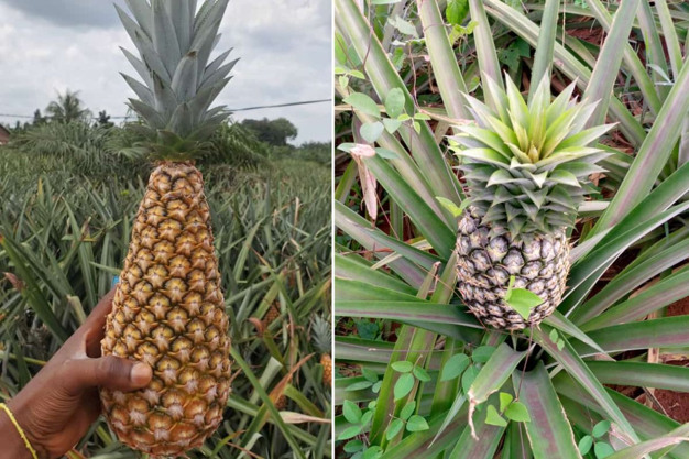 Le producteur poursuit : "Nous cultivons des ananas toute l'année, avec des récoltes tous les huit mois lorsque les fruits sont bien traités. Dans mon exploitation, la majeure partie de la production est destinée à l'exportation".
