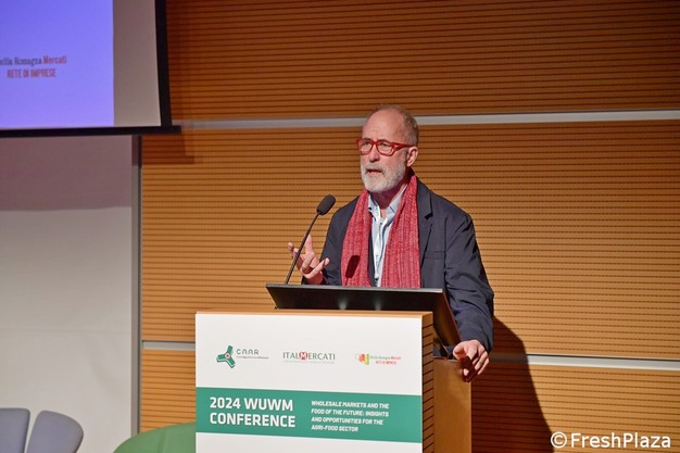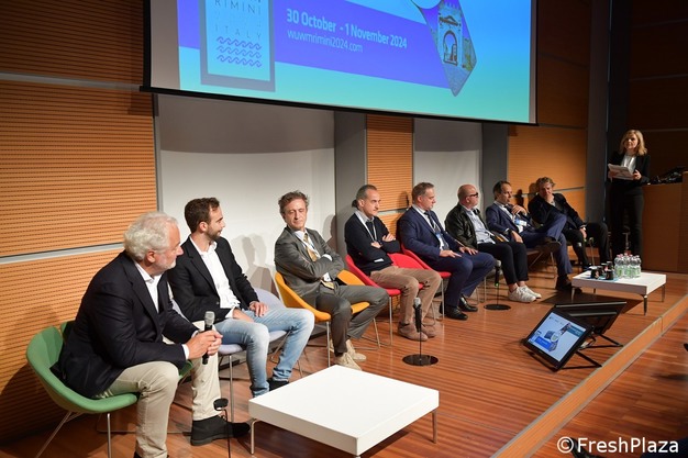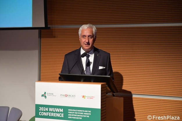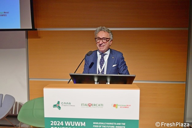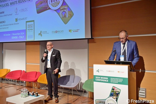 La matinée du 31 octobre s'est ouverte sur les salutations d'usage, d'abord de Gianni Indino, président de Caar Rimini, puis du Français Stéphane Layani, président de la WUWM et de la Fédération des Marchés de Gros de France, qui a souligné l'importance des marchés résilients et adaptables. Le président d'Italmercati, Fabio Massimo Pallottini, a énoncé les stratégies. « Les marchés italiens et les plus de 4 000 entreprises qui y opèrent, transportent chaque année plus de 7 millions de tonnes de produits frais, pour une valeur de plus de 11 milliards d'€. Au niveau européen, les marchés de gros alimentaires représentent une ressource industrielle et économique impressionnante, garantissant l'approvisionnement en produits frais d'environ 200 millions de consommateurs chaque jour. Les marchés de gros jouent également un rôle public essentiel dans la chaîne d'approvisionnement alimentaire, en garantissant la disponibilité, la salubrité et la sécurité des produits frais. »