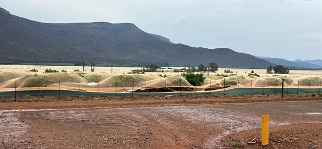 "Nous avons 36 hectares de filets arrachés et emportés par le vent", déclare Smit le Roux de RuFrut dans la vallée d'Ohrigstad. Les agrumes de la taille d'un ongle ont d'abord été frappés par la grêle, puis, quelques jours plus tard, des vents extrêmement violents ont déchiré les filets anti-grêle.