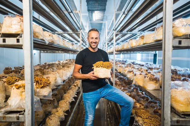 « Pour ce qui est de l'assortiment, la situation se change plus depuis des années. Les ventes de champignons blancs n'augmentent plus et diminuent peut-être même un peu. D'un autre côté, les ventes de champignons exotiques et de champignons blonds ne font qu'augmenter. Personnellement, je trouve ça positif que les consommateurs voient au-delà des simples champignons de Paris. Ces dernières années, nous avons introduit des pleurotes jaunes et roses, des pholiotes écailleuses, des shimeji, des calocères visqueuses et des polyphores en touffe, entre autres. Nous sommes constamment à la recherche de moyens d'améliorer cette culture et de développer d'autres produits.