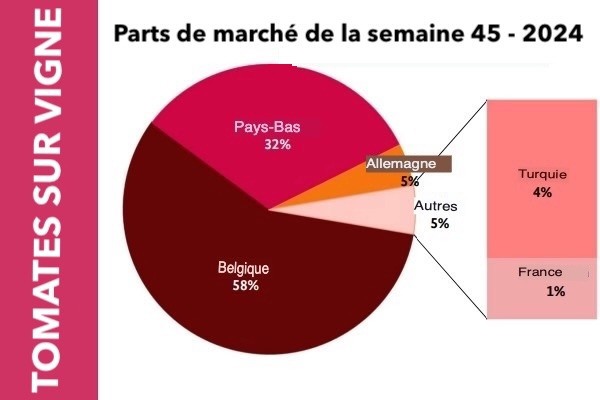 Les tomates en grappes provenaient principalement des Pays-Bas et de la Belgique, complétées par des produits nationaux et turcs. Les tomates rondes venaient principalement du Maroc et de la Belgique, les importations turques se classant en deuxième position en termes de volume. Les tomates cerises ont été majoritairement livrées depuis les Pays-Bas et l'Italie. Concernant les tomates charnues, le BLE a indiqué que l'approvisionnement provenait presque exclusivement de lots belges. Les arrivages espagnols, notamment à Hambourg et plus généralement, ont été relativement limités. Globalement, les besoins ont pu être satisfaits sans difficulté. À Hambourg, la qualité des lots marocains s'est dégradée, entraînant des ventes à des prix réduits. À Munich et Berlin, les paniers turcs ont connu un sort similaire, le commerce ayant été suspendu dès le milieu de la semaine. Cologne a rapporté une hausse quasi généralisée des prix, à l'exception des tomates cerises néerlandaises, dont le tarif a légèrement baissé.