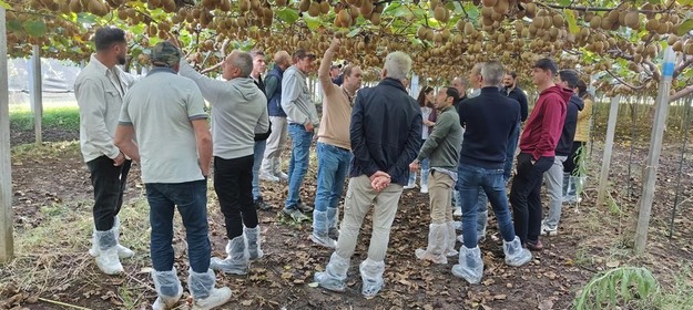 Kevin, responsable du marketing pour l'Asie chez RK Grower, explique : "J'ai récemment visité un verger à Latina, en Italie, lors de la journée portes ouvertes de Kikoka en octobre. Selon l'agriculteur, ce verger de kiwis luxuriant était dépourvu de branches de kiwis séchées il y a quelques années à cause de la 'Moria'. Mais grâce à une solution agricole innovante, le verger a été revitalisé", explique Kevin, "en coupant les plants de kiwi Hayward Green infectés par le 'Moria' et en greffant des plants de kiwi Kikoka Gold sur de solides porte-greffes 'Bounty'. Aujourd'hui, le verger est à nouveau plein de kiwis Kikoka Golden éclatants. Le propriétaire du verger est très satisfait des résultats obtenus jusqu'à présent et loue la nouvelle variété de kiwi de Kikoka pour sa taille, sa forme et sa qualité. Cette transformation remarquable apporte un nouvel espoir à l'industrie italienne du kiwi".