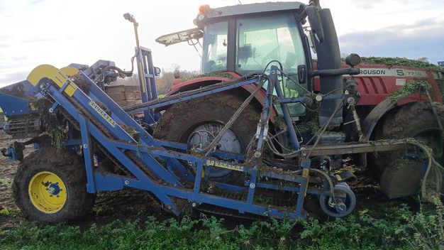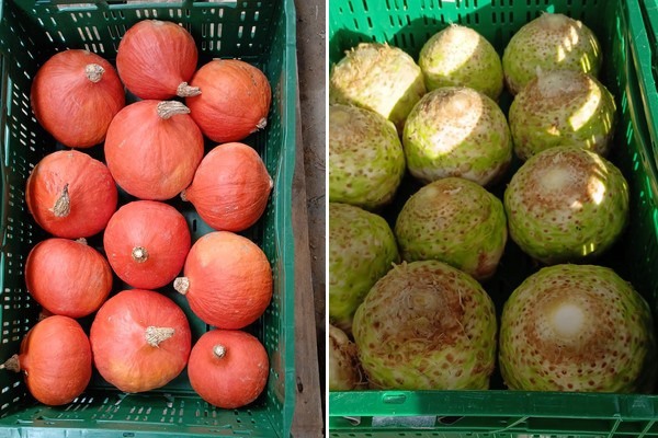 « En ce moment, nous sommes donc occupés à récolter le céleri-rave. Nous avons récemment acheté une nouvelle machine à cet effet. Nous l'avons fait fabriquer spécialement pour pouvoir prendre les tubercules par en dessous et ne pas subir de pertes. Cela facilite également certaines tâches. En ce moment, nous avons beaucoup de travail, mais dans l'ensemble, nous sommes contents. Nous avons également commencé à cultiver des potirons pour la première fois cette année et cela se passe bien. Je n'ai pas de référence avec les autres années, bien sûr, mais le rendement est bon et les ventes se déroulent de façon satisfaisant. À partir de l'année prochaine, nous prévoyons de mettre en place un programme régulier avec le commerce de détail. »