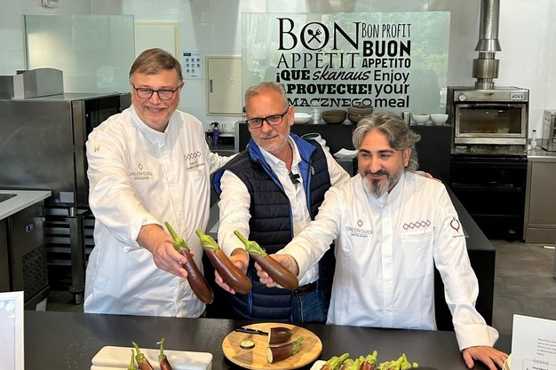 Beyond Seeds a présenté aujourd'hui son aubergine beChoc à Almeria, dans l'espace gastronomique du chef Tony García, accompagné du prestigieux chef belge Frank Fol, auteur du guide des restaurants végétariens We're Smart Guide, considéré comme la référence mondiale dans ce segment, et parrain de la Fondation Beyond Seeds, Cellbitec.