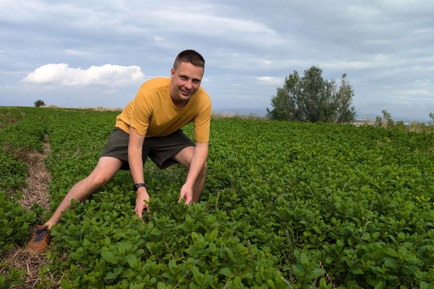 Gijbels dans le champ avec la menthe, quand elle était encore belle