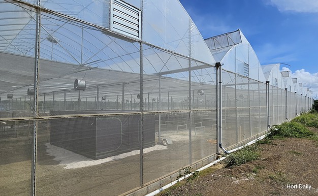 Sur les côtés, la serre est fermée par de la gaze : l'air passe et les insectes sont tenus à l'écart. La structure est galvanisée et l'acier peut résister à des rafales de vent de 85 km/h. Si la tempête est trop violente, la toile et le film se briseront, mais pas la structure. « Il y a beaucoup de vent sur l'île, mais ce n'est pas seulement votre ennemi, s'il souffle fort, c'est aussi votre ami, car il rafraîchit l'atmosphère. »
