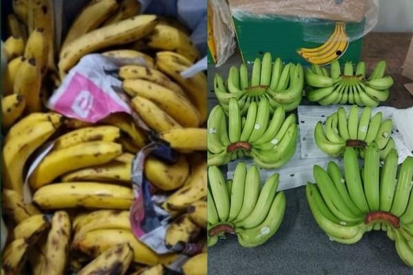 Bananes après 40 jours. À gauche, l'emballage conventionnel a été utilisé, à droite, l'emballage Banapeel a été utilisé.