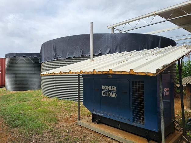 Toute l'eau de pluie est récupérée et un générateur est utilisé principalement pendant la période des pluies, car il n'y a pas assez de lumière pour produire de l'énergie à ce moment-là