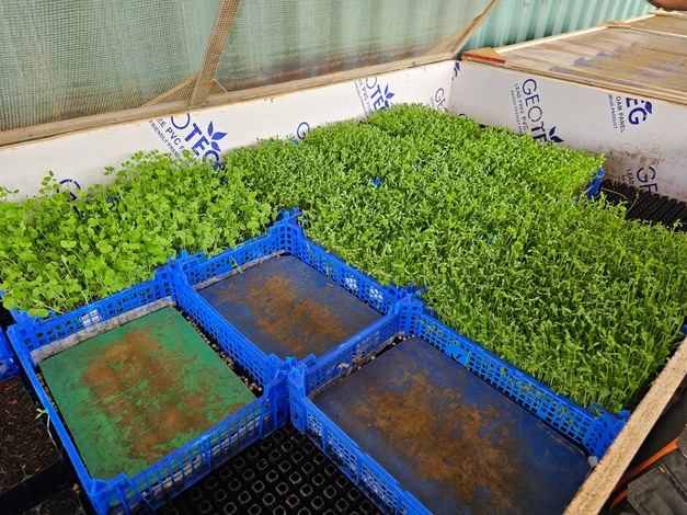 Cela a commencé par les jeunes pousses, germes, micro-légumes et épinards - une variété spéciale, le Malabar, dont la plante grimpe et peut atteindre deux mètres - mais entre-temps, dans la serre de Bon Tera Bonaire, on trouve également des pastèques, des concombres snack, des haricots mètre, légume très apprécié et typiquement surinamais, des tomates cerises cultivées après la saison des pluies - et des herbes telles que le basilic et la menthe. L'offre de graines germées comprend des radis rouges et verts, du tournesol et des pois.