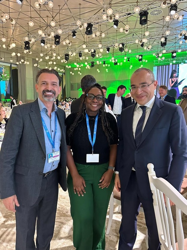 À droite : Zoltan Sztuchlik et Jamel Nampijja après leur rencontre avec Mikayil Jabbarov, ministre de l'Économie d'Azerbaïdjan, lors de la COP29