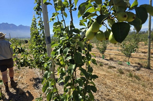 Outre les plantations en Europe, il précise que les plantations expérimentales progressent bien dans les principales zones de culture d'Afrique du Sud (gérées par TopFruit). "En Afrique du Sud, les progrès sont un peu plus lents, avec quelques milliers d'arbres encore en cours d'évaluation. La plupart des arbres ont un ou deux ans, tandis que certains ont trois ans. Dans trois ans environ, nous verrons davantage d'arbres plantés. La variété se comporte très bien en Afrique du Sud. Elle est plantée dans les zones de production de Ceres, Koue Bokkeveld, Grabouw, Paarl, Wellington, Stellenbosch et Woleseley, dans la province du Cap-Occidental. Bien que les poires Eden Gold n'aient été introduites qu'il y a quelques années en Afrique du Sud, elles suscitent déjà un grand intérêt".
