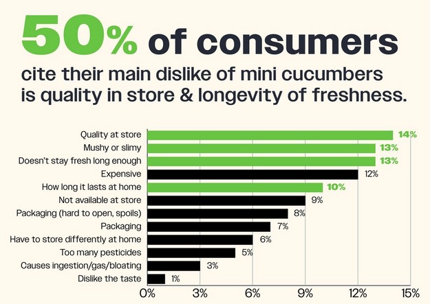 50 % des consommateurs considèrent que la mauvaise qualité des mini-concombres dans le commerce de détail est leur principal désagrément.