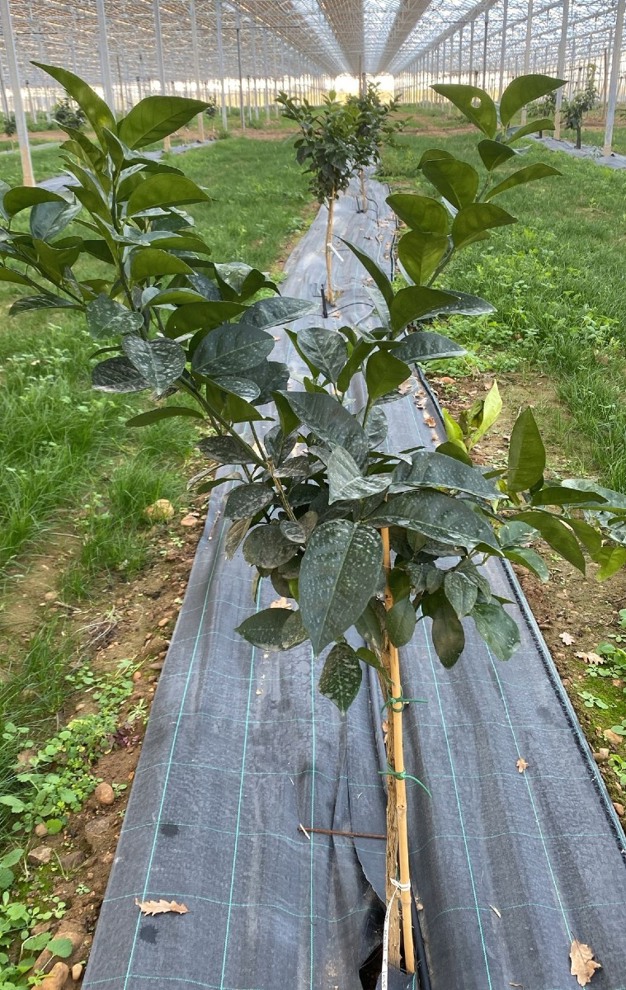 C'est auprès des Pépinières Vessières dans le département des Pyrénées-Orientales qu'Anthony Oboussier s'est procuré les plants d'agrumes et d'avocat. Grâce à un partenariat entre le pépiniériste et la Chambre d'Agriculture, Anthony a pu bénéficier d'une journée formation sur place. Sur la photo à gauche le Pomelo et à droite la Clémentine.