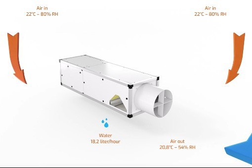 OptiDry Advanced DX est également disponible en version hydroloop, qui permet d'évacuer la chaleur en fonction des besoins via un circuit d'eau. Cela permet également un refroidissement ou un chauffage actif, et donc un contrôle actif du climat.
