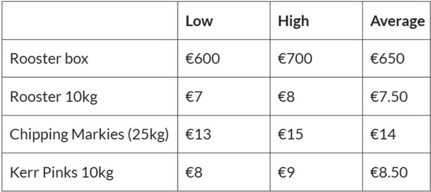 La demande au détail et la consommation domestique ont été légèrement modérées depuis la période des fêtes, mais elles devraient commencer à se redresser. Il ne devrait pas y avoir de pression à la baisse sur les marchés car les rendements sont moyens et les stocks ne devraient pas être excédentaires après les pénuries de l'année dernière. La disponibilité des pommes de terre de semence pour la prochaine saison est un sujet de préoccupation.