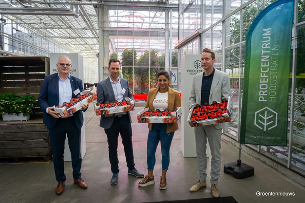 Si la culture des fraises a fait l'objet d'une attention mondiale ces dernières années, les premières photos de recherche du Proefcentrum Hoogstraten sur leur culture hors-sol sont encore en noir et blanc. En effet, la station d'expérimentation flamande mène des recherches sur la culture des fraises depuis plus de 60 ans et des essais sur les tomates depuis 70 ans. Samedi dernier, un nouveau chapitre a été ajouté à cette riche histoire, lorsque Hans Vanderhallen et Tom Van Delm de Proefcentrum, ainsi que le ministre de l'agriculture Jo Brouns et le député Jinnih Beels, ont officiellement inauguré les nouvelles serres. « Avec 0,2 % de la surface agricole, l'horticulture représente une valeur de production d'un demi-milliard d'€. Atteindre le sommet est une chose, maintenir cette position en est une autre. Pour cela, il faut des personnes prêtes à partager leurs connaissances et une infrastructure de pointe », a déclaré le ministre.
