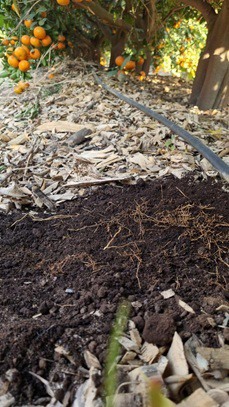 À droite : une combinaison d'écorce de bois et de compost pour conserver des racines saines