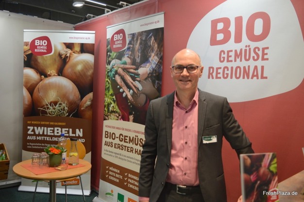 Steffen Mucha sur le stand de Bio-Gemüse regional AG au salon Biofach de cette année à Nuremberg