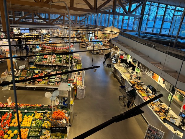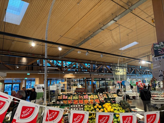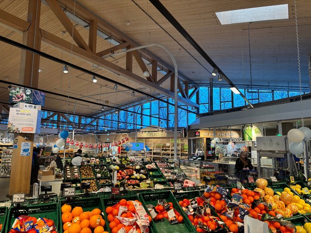 Il s'agit sans aucun doute du plus beau supermarché d'Allemagne. L'utilisation abondante du bois lui confère un aspect chaleureux, tant à l'intérieur qu'à l'extérieur. La formule se distingue par l'espace généreux laissé à l'entrepreneuriat. Le magasin propose une large gamme de produits locaux, dont il raconte l'histoire. Il est spacieux et dispose d'un grand parking, ce qui est indispensable compte tenu de la vaste zone de chalandise de ce supermarché. Ce projet est vraiment à la pointe de la technologie et mérite une visite. Les photos parlent d'elles-mêmes.