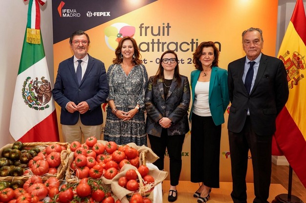Fruit Attraction, organisé par Ifema Madrid et Fepex, se tiendra du 30 septembre au 2 octobre dans le parc des expositions de Madrid. Il affiche déjà plus de 90 % de ses stands réservés à quatre mois de l'événement, comme l'a annoncé aujourd'hui sa directrice, María José Sánchez, lors de la présentation de la 17e édition. Également présents à cette présentation, Arancha Priede, directrice générale des salons et congrès d'Ifema Madrid, Cecilio Peregrín et José María Pozancos, respectivement président et directeur de Fepex, ainsi qu'Elena Curzio, chargée des affaires économiques et commerciales et de la promotion de l'ambassade du Mexique en Espagne.