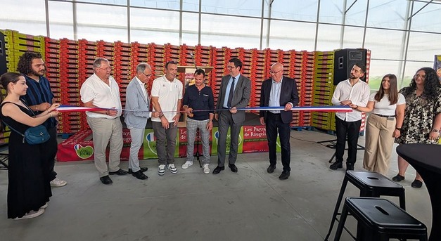 Mercredi dernier, à Sainte-Bazeille dans le Lot-et-Garonne, les producteurs engagés des Paysans de Rougeline, Bruno Toppan et Rui Vilas Boas, ont inauguré une nouvelle installation « à la pointe de la technologie » : 5,5 hectares de serres multi-chapelles à double parois gonflables, indique la coopérative sur LinkedIn. Démarré fin 2020, ce projet, dédié aux tomates et aux aubergines, a nécessité quatre années de développement (études techniques, analyses environnementales, démarches administratives complexes).