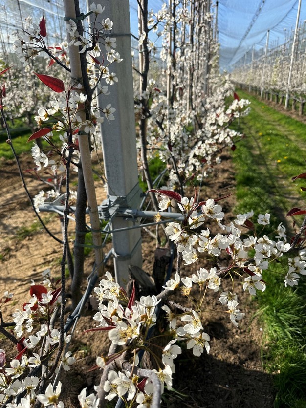 « Les volumes seront probablement à nouveau légèrement inférieurs à la normale. Un peu comme l'année dernière, mais il est encore très tôt pour se prononcer. Nous envisageons avec confiance la première récolte de Piqa Red, anciennement PiqaBoo. Les premiers arbres que nous avons greffés se portent bien. Même sur les plus jeunes arbres, on voit quelques fruits ici et là. Nous allons donc avoir une première récolte complète et sommes impatients ! »