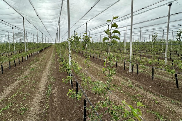 Les variétés résistantes et moins sensibles à la tavelure deviennent de plus en plus importantes pour les exploitations biologiques. « La situation devient de plus en plus difficile et nous devons donc nous pencher sur les variétés résistantes dans la culture bio. Outre la Piqa Red, cela s'applique également aux poires Qtee et à la nouvelle pomme GoodnessMe. Nous l'avons plantée au printemps et elle pousse déjà bien. Là aussi, les premières pommes pendent déjà aux arbres, mais nous ne verrons la première vraie récolte que l'année prochaine. Toutefois, à terme, l'objectif est de remplacer la plupart des Jonagold par des GoodnessMe. »