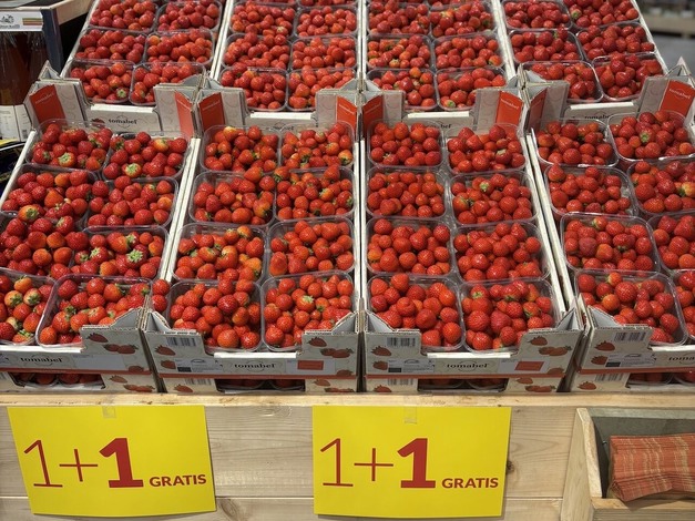 Pour accompagner ce pic de production, le magasin a mis en place une promotion uniquement valable le week-end dernier, « 1+1 gratuit pour 4,99 euros ». Une promotion qui aura eu l'effet escompté : « Le week-end s'annonçait une fois de plus ensoleillé, on voyait clairement l'augmentation des volumes de vente sur la semaine, c'était vraiment le bon moment pour engager une telle promotion qui a été faite sur de la fraise Tomabel Sensation de calibre B. Une fraise un peu plus petite que celle que l'on a l'habitude de voir mais qui reste très attractive. Nous avons travaillé sur un prix compétitif et une fraîcheur maximale avec une commande au jour le jour. Cette stratégie a abouti à de très bons résultats, sur le week-end nous avons dépassé les 1 200 raviers vendus ! Ce qui nous fait dire qu'après coup, on ne s'était pas trompés sur la pertinence de cette promotion ».