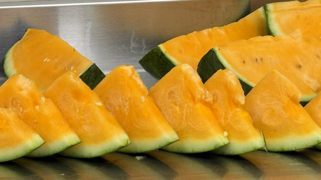 « La pastèque orange est différente dès le premier coup d'œil. Elle a une forme plus ovale, qui rappelle les pastèques traditionnelles d'Amérique latine. Sa peau est d'un vert intense, qui n'a rien à voir avec la couleur rayée sans pépins classique. Et lorsqu'on l'ouvre, on est surpris par cette couleur orange vif à laquelle on ne s'attend pas. »