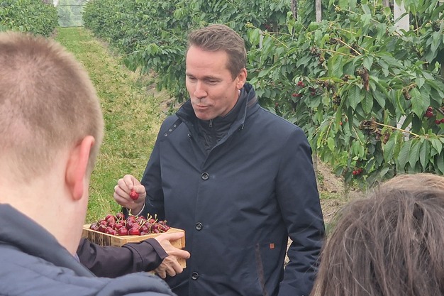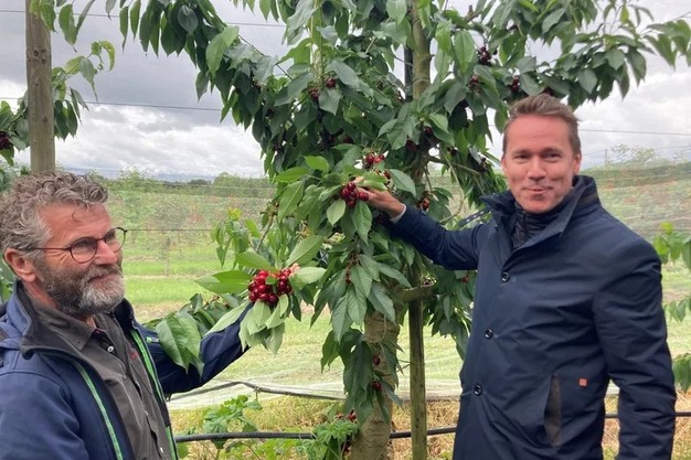 Le ministre flamand Jo Brouns déguste les premières cerises biologiques