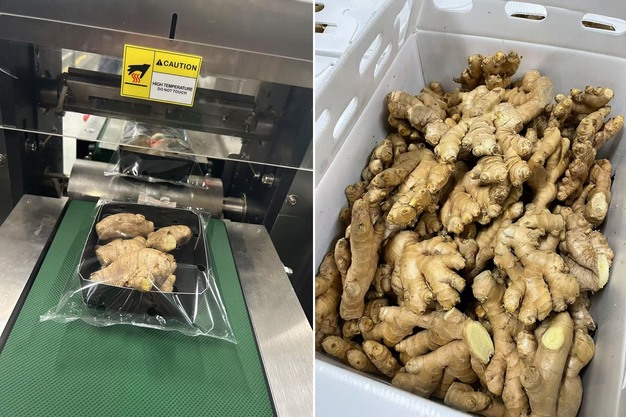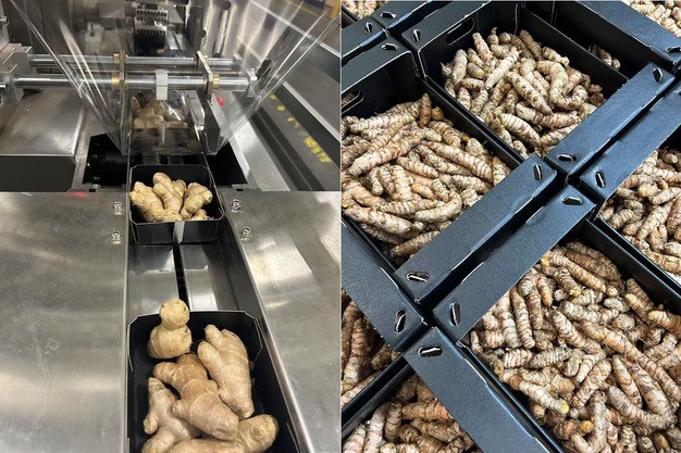 À gauche : gingembre en flow pack, à droite : gingembre bio du Pérou