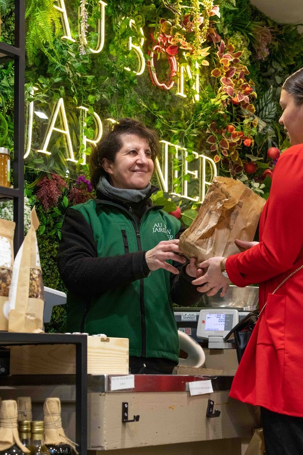 Dans les 8 points de vente, aux côtés des fruits et légumes sélectionnés pour leur qualité et leur origine, sont mis en avant des produits d'épicerie fine directement sourcés auprès de petits producteurs bio