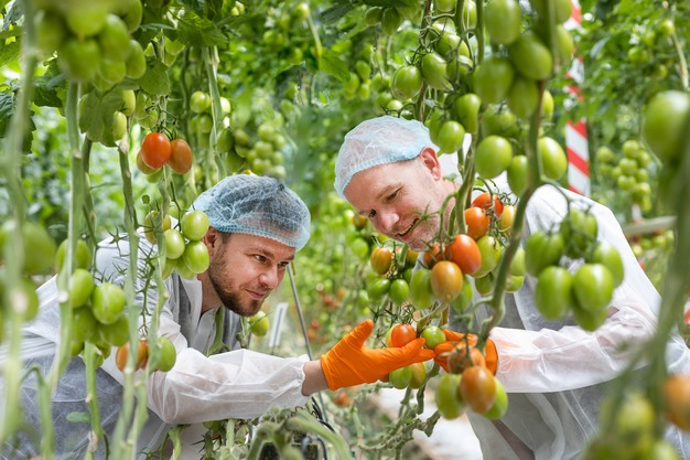 Cees Ammerlaan, spécialiste du développement de produits pour les tomates hightech, et Josue Monroy, spécialiste des ventes au Royaume-Uni.