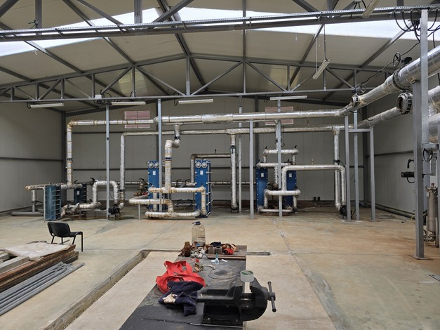 L'ensemble du système de chauffage fonctionne à l'énergie géothermique provenant de trois puits forés à l'origine pour le pétrole à une profondeur de 1 900 mètres. L'eau passe à une température comprise entre 83ºC et 94ºC et à une vitesse de 50 m3 par heure à travers des échangeurs de chaleur construits aux Pays-Bas pour le chauffage des serres.