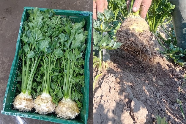 Actuellement, le céleri-rave provient surtout des stocks. La nouvelle récolte est une primeur, avec un feuillage bien frais, tandis que les tubercules nus de l'ancienne sortent encore des entrepôts. Le stock européen a été limité cette saison en raison d'une saison de croissance modérée et de rendements plus faibles pour la campagne 2024. Fossa Eugenia a indiqué dans le magazine professionnel De Boerderij que les rendements de la saison de stockage étaient inférieurs à la moyenne pluriannuelle, ce en raison du printemps humide, qui a retardé de nombreuses plantations.