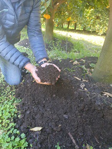 Ils ne peuvent pas se débarrasser de leurs problèmes par pulvérisation, et pourtant, ses vergers et ceux de ses collègues agriculteurs biologiques ne sont pas envahis par la maladie des taches noires des agrumes. "Les agriculteurs conventionnels s'intéressent à la manière dont nous procédons. La réponse courte est qu'il y a toujours un moyen pour la nature de combattre les parasites et les maladies, et nous cherchons ce moyen. Quelle est la cause de la maladie ? Il faut enlever les feuilles, ajouter suffisamment de compost pour décomposer les feuilles. Il s'agit de rendre le sol incroyablement sain, pour que l'arbre soit en bonne santé et en meilleure position pour faire face à des maladies comme la tache noire".