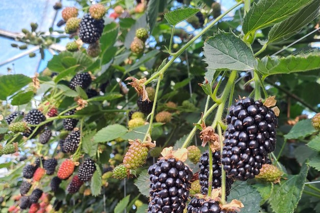 En effet, le grand favori des clients de l'entreprise est la mûre Sweet Royalla. « C'est la première année que nous avons cette variété, et nous constatons qu'elle est très prisée. Je ne m'attendais pas à ce que la demande soit aussi forte, mais nous ne nous en plaignons pas. Nous essayons toujours de les laisser sur l'arbuste jusqu'à ce qu'elles soient bien pleines et qu'elles aient le meilleur goût. Nous avons des framboises depuis plusieurs années et ça marche bien aussi, mais les mûres sont un peu plus faciles à cultiver. A maturité, elles peuvent attendre la cueillette une journée entière sans problème. » Pour ces deux fruits rouges, Demedts prévoit une production jusqu'en octobre. « Cela dépend du temps, bien sûr, car s'il fait froid, la récolte pourrait avoir lieu plus tôt. Quoi qu'il en soit, nous serons présents sur le marché pendant encore un certain temps. »