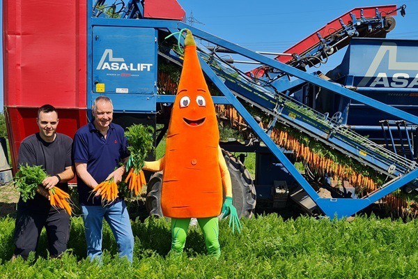 © Meine MöhrenHubert et Johannes Merz, accompagnés de Max Möhre, célèbrent le lancement de la saison des carottes en Allemagne