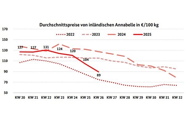 Pour les pommes de terre précoces d'origine nationale, les observations font état, dans l'immense majorité des cas, de rendements élevés et de qualités satisfaisantes. Toutefois, la présence persistante de volumes considérables de produits importés continue d'exercer une pression sur les prix des marchandises allemandes, plus forte que les années précédentes, selon les opérateurs et les analystes du marché. Le marché apparaît actuellement en situation de sur-approvisionnement, ce qui explique la poursuite de la baisse des prix.