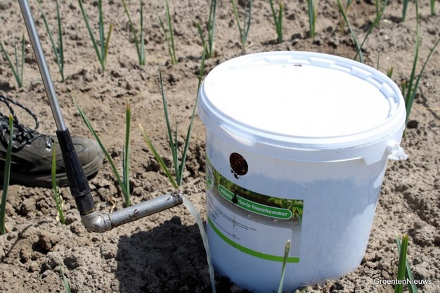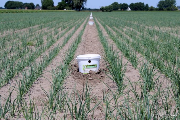 Aux alentours de Wouwse Plantage, il est possible d'apercevoir des seaux blancs au milieu des champs d'oignons et de poireaux nouvellement plantés à la mi-juin. Plus tard, lorsque la culture commencera à pousser vigoureusement, ils ne seront plus aussi visibles. À ce moment-là, il y aura des panneaux au bord des champs, pour indiquer les efforts déployés par l'agriculteur pour lutter contre les thrips à l'aide d'agents de lutte biologique.