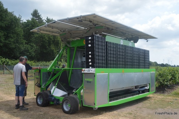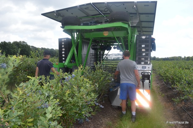 Dans le contexte de l'augmentation du salaire minimum en Allemagne, le défi est et reste de maintenir les coûts de production aussi bas que possible, souligne Berden, qui dispose aujourd'hui de cinq machines de récolte, dont FineField. Néanmoins, quelque 120 récolteurs, principalement originaires de Roumanie et d'Ukraine, sillonnent l'exploitation pendant la période de pointe de la récolte. Blueberry Giant cultive exclusivement en plein air. « Jusqu'à l'année dernière, nous avions aussi la variété tardive Aurora sur 3,5 ha sous abri. Du travail essentiellement manuel alors que l'expérience montre que la motivation de nos cueilleurs diminue fortement vers la fin de la saison. Cela se traduit par une mauvaise récolte, sans parler des prix bas dans le segment tardif. La culture en conteneurs n'est pas non plus une option pour nous, car ce système est difficile à combiner avec la récolte à la machine. »