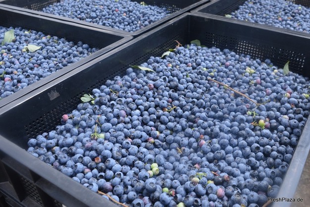 À la mi-juin, la récolte des myrtilles a commencé à la ferme Blueberry Giant à Weeze, en Allemagne. La récolte de Duke est maintenant terminée, et c'est maintenant qu tour des variétés moins précoces TopShelf, Draper et Valor. Et la récolte de la variété Calypso ne tardera pas à commencer, rapporte John Berden, directeur commercial de l'entrepise, qui fournit principalement la grande distribution allemande par l'intermédiaire de Berry Packing Service, conditionneur à Venlo qui fait également partie du groupe Schrijnwerkers.