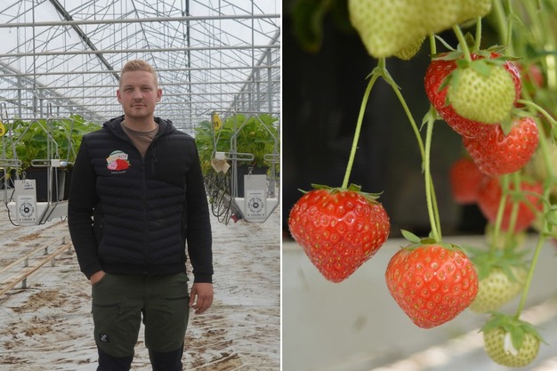 Dominik Janssen dirige l'entreprise avec son père Volker / à gauche : fraises d'été de la variété Opera