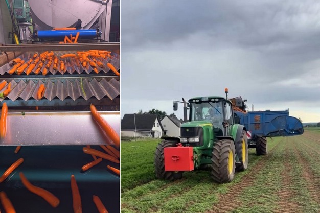 Les premières carottes de la région ont pu être récoltées dès la première semaine de juillet. « Nous aurions même été en état de commencer un peu plus tôt la récolte de notre toison », explique Maximilian Coenen, producteur basé à Bedburg, en Rhénanie. « Jusqu'à présent, les conditions de culture ont été extrêmement favorables, et nous avons globalement été épargnés par les intempéries. Début juin, une infime partie de nos parcelles a toutefois été touchée par la grêle. Si nous évitons une nouvelle période de sécheresse prolongée, je table sur une récolte de carottes d'un niveau convenable à bon. »