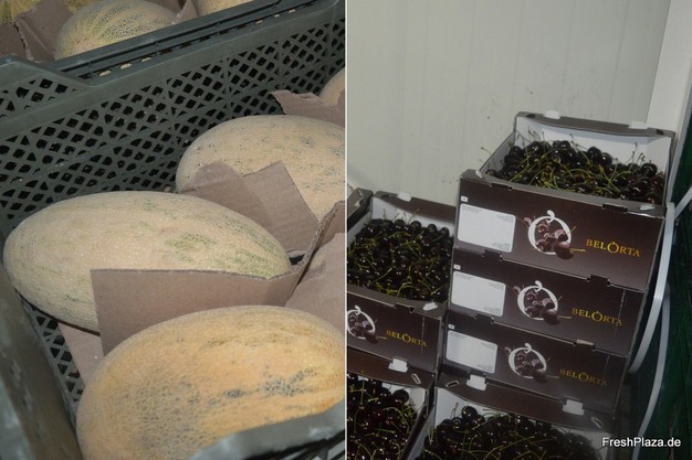 © Hugo Huijbers | FreshPlaza.frLes melons originaires d'Ouzbékistan (à gauche) rencontrent un franc succès, notamment auprès de la communauté russe. Les cerises douces en provenance de Belgique sont également fortement appréciées actuellement