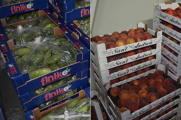 Fruits à noyau italiens et légumes-fruits turcs dans l'entrepôt de EK-Service GmbH
